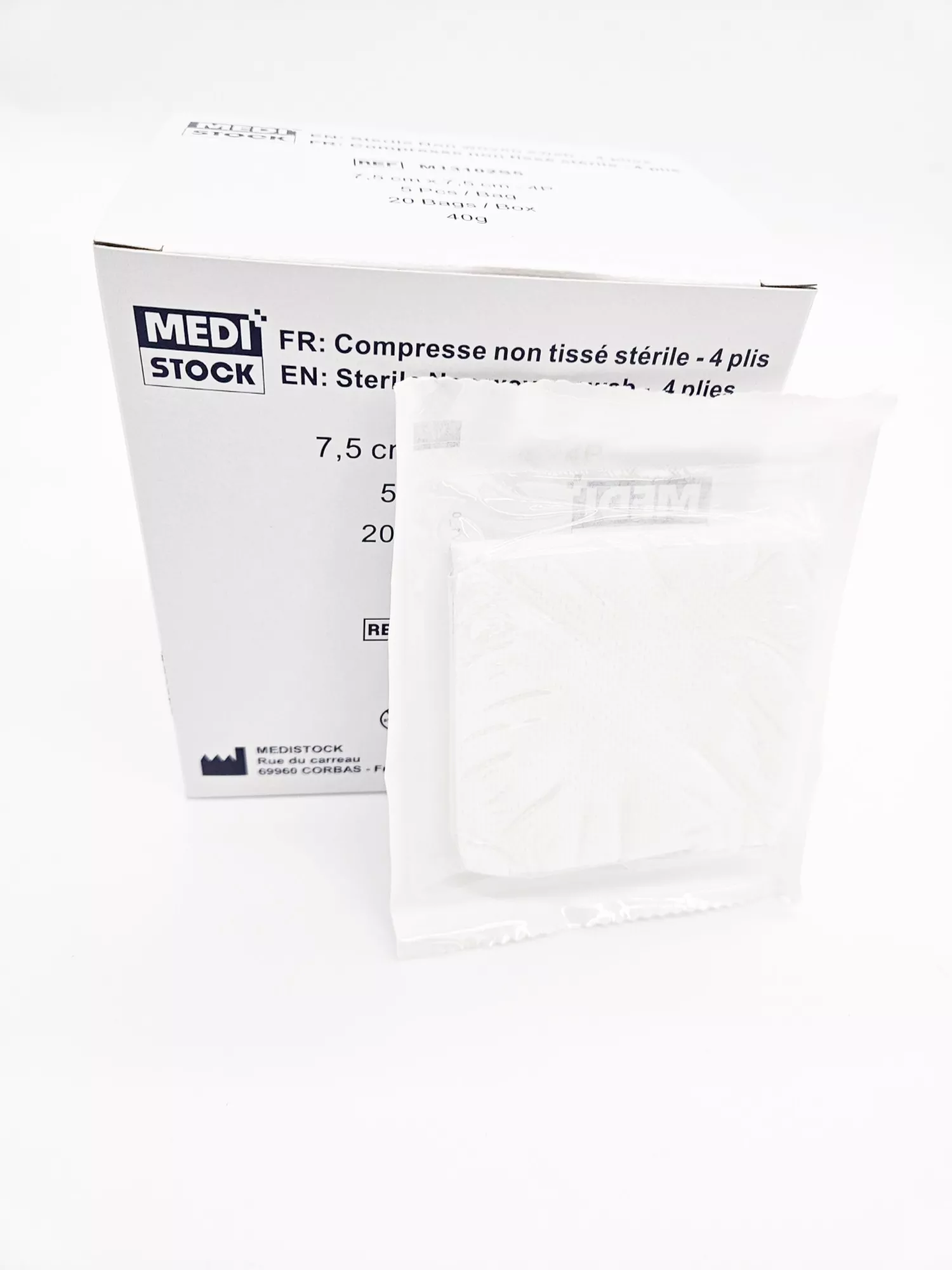 Sterile Vlieskompressen 7,5 × 7,5 cm, Beutel mit 5 Stück