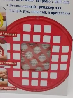 This mini power web's reduced size is ideal for finger and hand exercises. Diameter 17.5 cm. 3 different resistances: soft (yellow), medium (red) and firm (green)